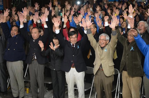 NAGO CITY, Japan – In Okinawa’s Nago City mayoral election which centered on the plan to construct a new U.S. military base in the city, anti-base incumbent Inamine Susumu won with a wide margin over a pro-base candidate backed by the ruling Liberal Democratic (LDP) and Komei parties. This marks Okinawan people’s historic victory.