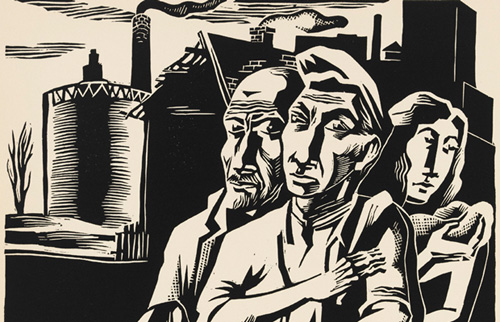 Mitchell Siporin’s 1937 woodcut, “Workers Family.” | Oakton Community College
