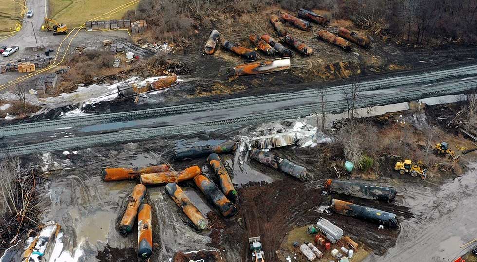 El accidente del tren de carga de Norfolk Southern del 2 de febrero de 2023 en la pequeña y rural East Palestine despidió sustancias químicas peligrosas que envenenaron el aire y las aguas subterráneas. Envió una nube en forma de hongo que se elevó sobre nuestras cabezas y mató a mascotas y miles de peces.