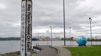 Photo: San Jose rally says “no” to war with Iran. Henry Millstein/PW