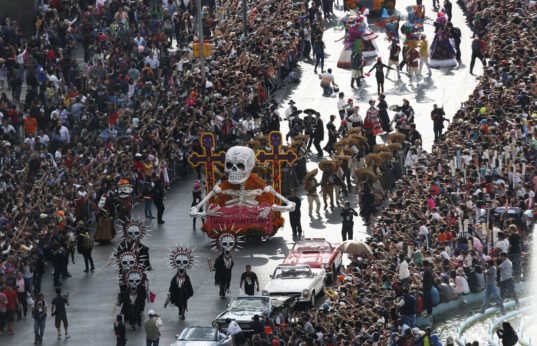 But the United States hovers over all. Over the last six years, Mexico City resident Jessica Esquivias has been worried enough that she launched an effort to rejuvenate the tradition of the Day of the Dead. France 24 reported last fall that she had organized thousands of parade-goers to paint their bodies and faces as Catrinas and march through Mexico City on Nov. 2. Esquivias sees this as both returning to older traditions and as a “political and social satire” of “U.S.-style Halloween celebration.”