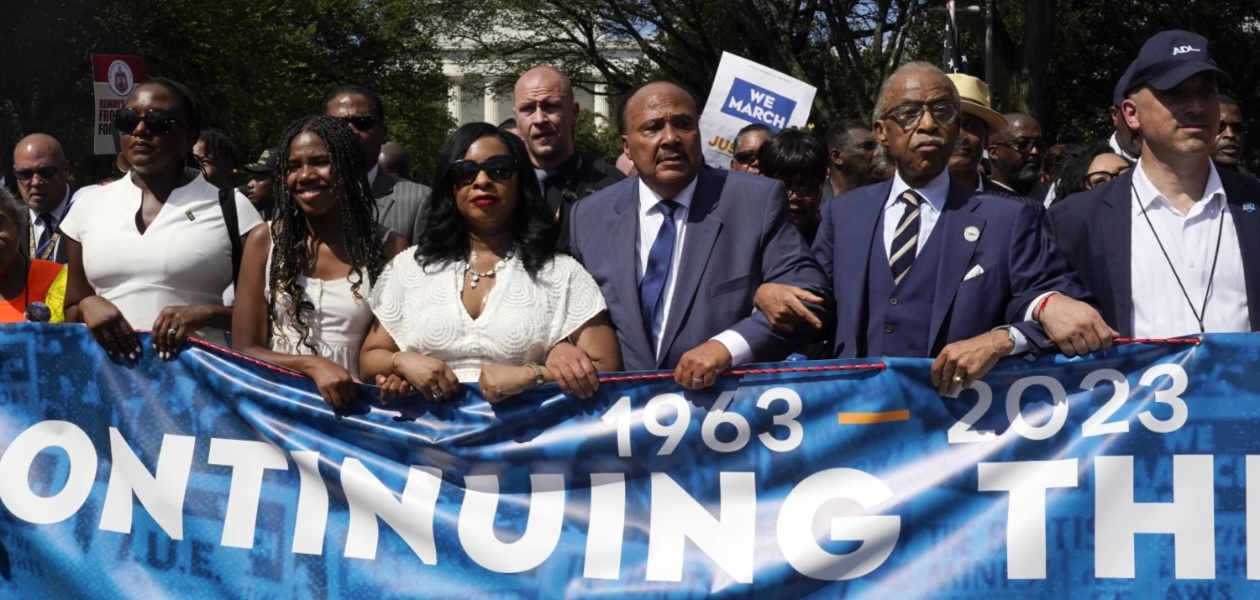 That same theme ran through speeches and interviews during this year’s march, which attracted tens of thousands of people to the Lincoln Memorial to listen to speakers ranging from AFL-CIO President Liz Shuler to Dr. King’s son, Martin Luther King III, to the Rev. Al Sharpton.