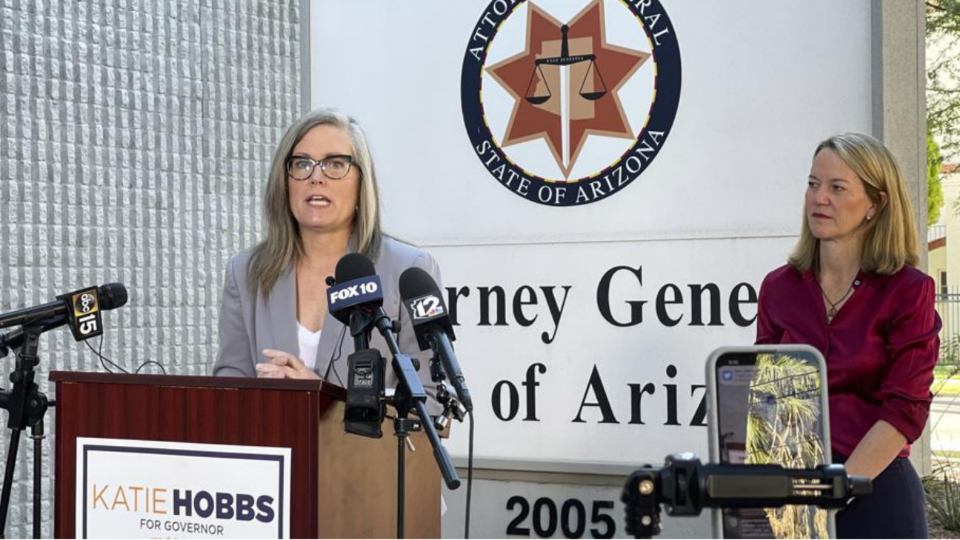 “We cannot let (Lake) hold public office and have the power to enact extreme anti-choice policies that she’s spent her entire campaign touting,” Hobbs said during a news conference outside the attorney general’s office. “As Arizona’s governor, I will do everything in my power and use every tool at my disposal to restore abortion rights in Arizona.”