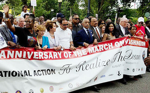 Photo: The Rev. Al Sharpton, center, carries the banner with other civil rights and labor leaders at the 50th Anniversary of the March on Washington to “realize the dream.”(via American Federation of Teachers)