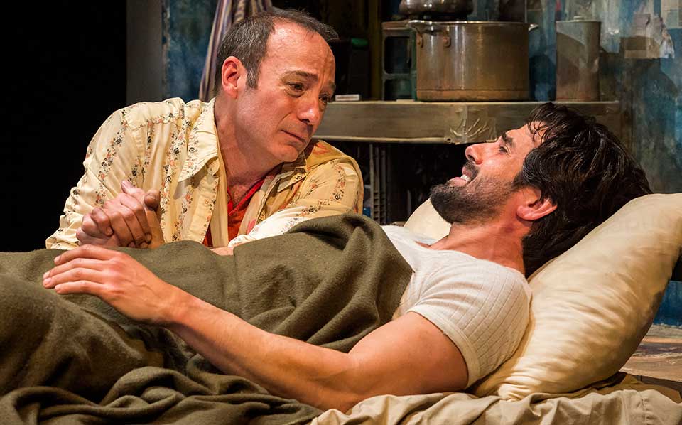 Michael Michetti directs this intimate two-hander, which turns poignant, chilling, funny, and sensual in sudden mercurial shifts of mood. The movie-loving Molina escapes the harsh tedium of prison life by recounting plots of his beloved film noir classics in an abundance of detail that might ordinarily seem unbearable—but what else have the cellmates to occupy themselves?—and emulates the spell of their glamorous leading ladies. He also speaks of his circle of queer friends and his devoted but sickly mother, perhaps the only person who has ever truly loved him. He is obviously attracted to Valentín and makes the constant effort to ease Valentín’s hunger, isolation, and sickness.