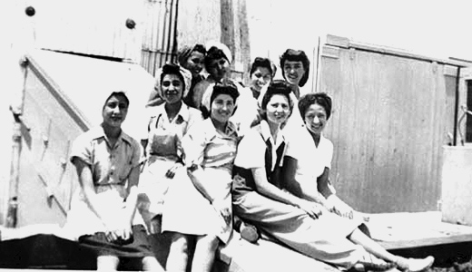 Photo: Mexican-American women cannery workers on lunch break outside the Southern California Fish Corporation, 1947. | San Pedro History Project / Los Angeles Public Library