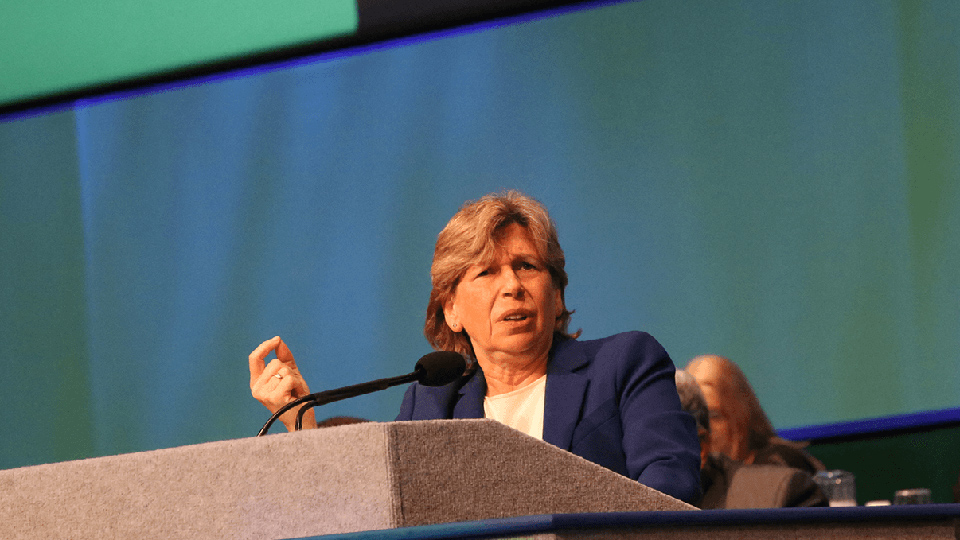 La presidenta de la Federación Americana de Maestros (AFT), Randi Weingarten, una de las invitadas especiales que se dirigió a nuestra convención, entusiasmó a los asistentes el miércoles.