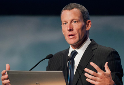 Photo: Cancer survivor Lance Armstrong speaks to delegates at the World Cancer Congress in Montreal Aug. 29. Graham Hughes/The Canadian Press/AP