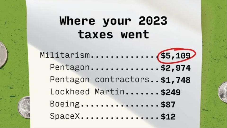 In 2023, the average taxpayer spent $2,974 on the Pentagon. Of that, just $705 went to salaries for the troops, who often have to rely on programs like food stamps. A much larger sum—$1,748—went to corporate Pentagon contractors. That’s more than the average American’s monthly rent, $1,372.
