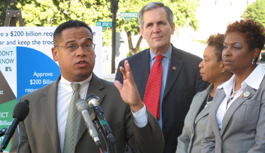 Photo: Reps. Keith Ellison, at microphone, and Barbara Lee, second from right, are joined by Reps. Lloyd Doggett, D-Texas, and Yvette Clarke, D-N.Y., at a 2007 Congressional Progressive Caucus press conference on ending the U.S. occupation of Iraq. http://www.flickr.com/photos/keithellison/1533664828/ cc 2.0