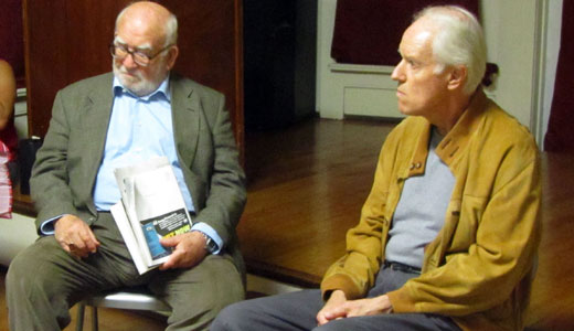 Photo: Actors Ed Asner, left, and Mike Farrell, at the commemoration of the 60th anniversary of the execution of the Rosenbergs, June 19, in Los Angeles. Eric Gordon/PW