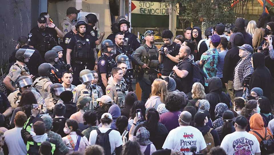 Esta última declaración se refería al asalto contra los manifestantes el martes anterior por la mañana por parte de alrededor de 100 policías de diversas jurisdicciones, que disolvieron el campamento en Cal Poly Humboldt y arrestaron a 32 personas, entre ellas un profesor y un reportero de una estación de radio local. .