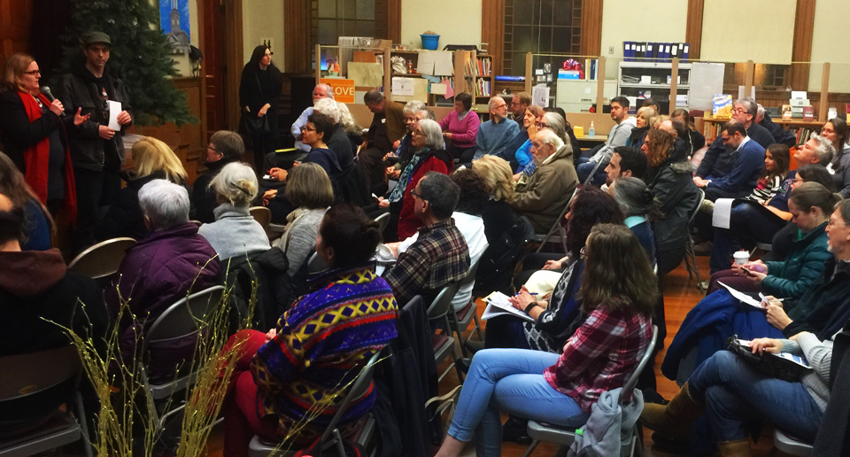 Over 120 people from across the Massachusetts South Shore and beyond gathered in the United First Parish Church in Quincy Square on January 5th to discuss their concerns regarding growing threats to human rights and the environment, and to plan actions to promote equality, fairness and a healthy climate. This event was sponsored by the South Shore People’s Network and the South Shore Coalition for Human Rights, and hosted by the church’s Social Justice Concerns Committee.