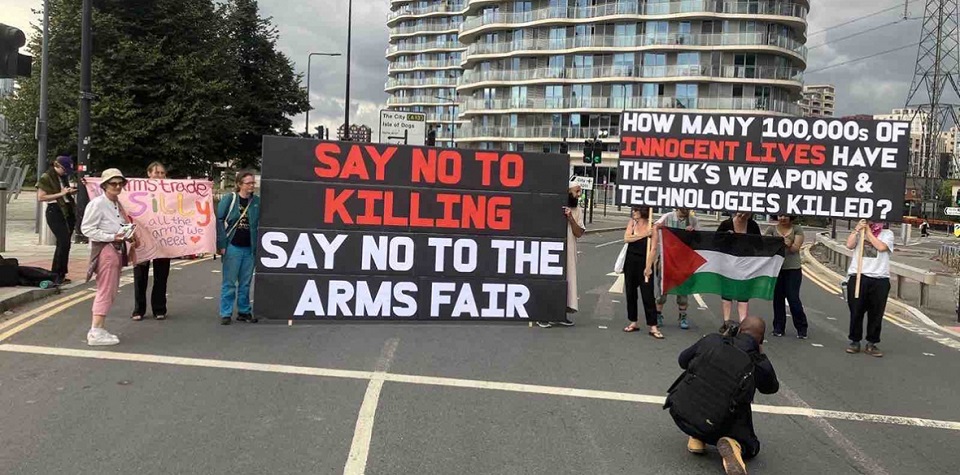 Protests kicked off last week to stop the fair from setting up, with at least 12 people arrested for taking part in the actions. Stop the Arms Fair (STAF) is coordinating two weeks of action, with groups organizing events to highlight the different areas and communities that the fair impacts.
