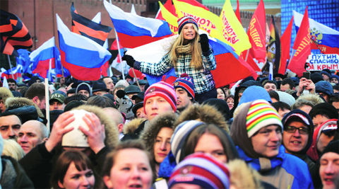 Photo: Ukrainians celebrate reunification with Russia. AP