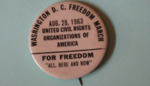 Photo: An image of one of the original buttons from the 1963 March on Washington for Jobs and Freedom. (Courtesy of April Smith.)