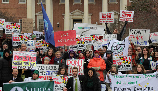 Photo: Anti-fracking demonstration in Maryland, days prior to the governor’s decision to decline a veto of the bill that would ban fracking until Oct. 2017. | Don’t Frack Maryland