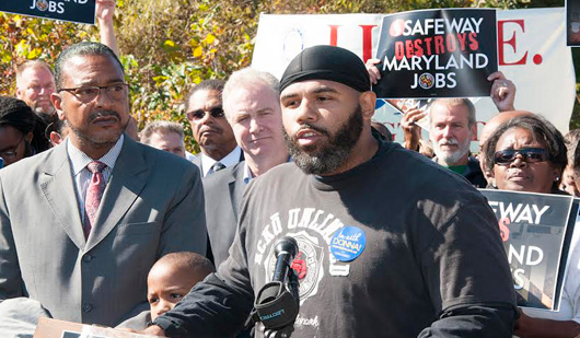 At the rally, Prince George’s County Executive Baker said that for years Safeway has been receiving tax concessions and other incentives to remain, but without warning or discussion it announced it is pulling up stakes, “leaving high and dry the men and women who made the company a success.