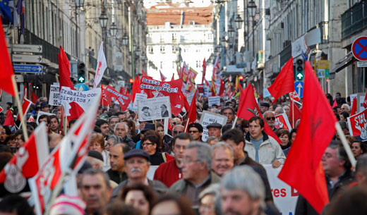 Photo: Thousands of demonstrators march during a protest against the austerity economic measures taken by the Portuguese center-right coalition government, Feb. 11, in Lisbon. Francisco Seco/AP