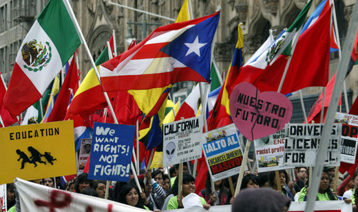 A smaller march was held in East Los Angeles, where community people marched down First Street to Mariachi Plaza in support of immigration rights. Other actions took place throughout the greater Los Angeles area.