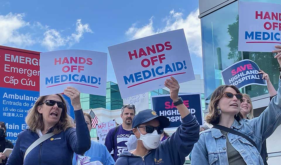 OAKLAND, Calif.—As Congressional Republicans were ramping up their efforts to keep tax breaks for the rich by slashing $1.5 trillion from programs helping ordinary people, at hospitals around California doctors, nurses and other health care workers rallied with families, people with disabilities, seniors and elected officials on May 13, demanding, “Hands Off Medicaid!”Over 300 protesters gathered for a noontime rally at Oakland’s Wilma Chan Highland Hospital, a public hospital that is part of the county-wide Alameda Health System, to fight back against some $880 billion in cuts Republicans are proposing from Medicaid (known in California as Medi-Cal) and other health care programs.