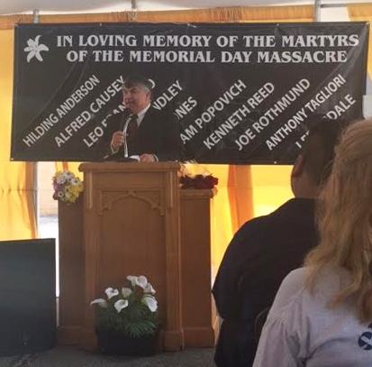 President Richard Trumka took the stage to thunderous applause and put a point on the memorial. “I don’t know if we can do justice to the memory of the events because to treat them honestly is to describe truly, truly horrific actions,” he said. “Yet, this massacre happened in the light of day and went unpunished.”