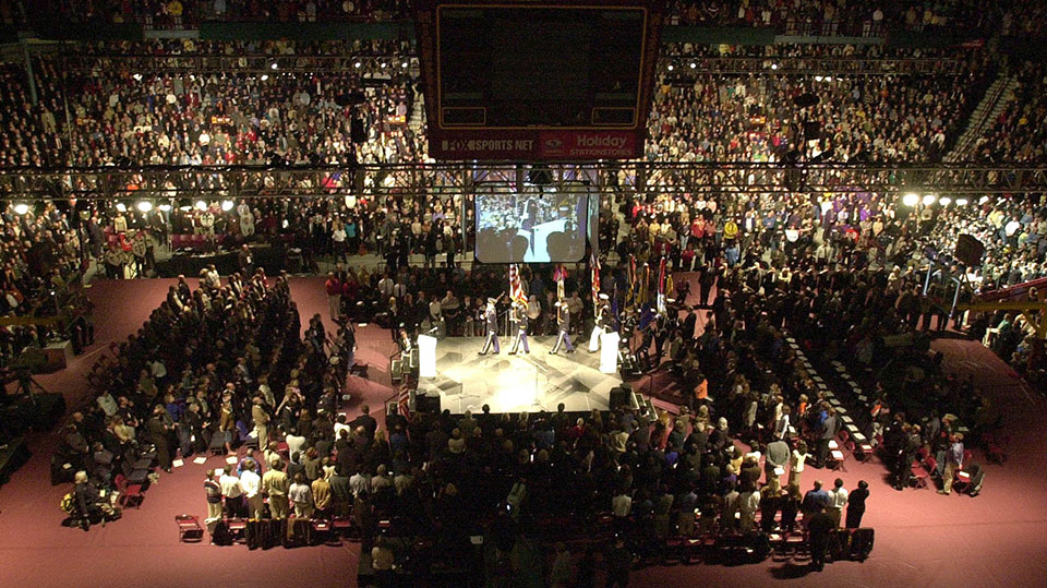 When Sen. Tom Harkin, Wellstone’s friend Rick Kahn, and sons David and Mark Wellstone called on the crowd to ‘Stand up, keep fighting,’ ‘Organize, organize, organize,’ and ‘Win the election for Paul!’ they were paying the most appropriate tribute to Paul and Sheila Wellstone and the others who died in the heat of a battle to defeat the ultra-right, and 20,000 Minnesotans, along with national political figures in the audience, cheered, stomped their feet and pumped their fists in response.