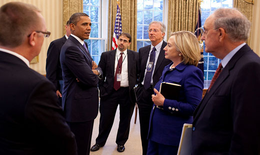 This article originally appeared on the author’s blog, Dispatches from the Edge. Photo: President Barack Obama talks with his Middle East team. At center is Secretary of State Hillary Clinton who will step down next term. (Pete Souza/White House)