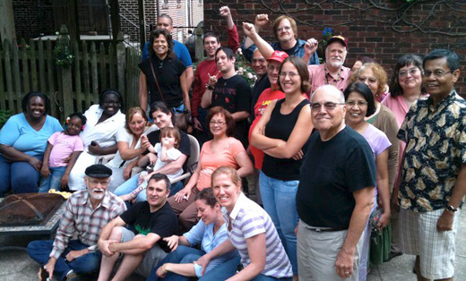 Photo: Mike enjoying a wonderful summer afternoon with family, neighbors and friends at a Chicago backyard fundraiser for the People’s World. Roberta Wood/PW