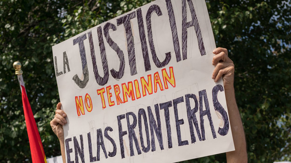 Una madre brasileña separada de su hijo de 10 años hace más de un mes tomó la palabra en una manifestación en Boston.