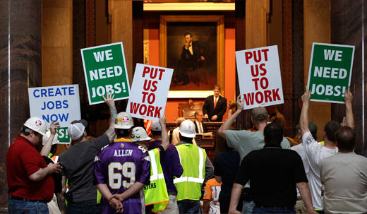 Photo: Construction workers rally for jobs outside the Minnesota House at the State Capitol, May 3, 2012, in St. Paul, Minn. Jim Mone/AP