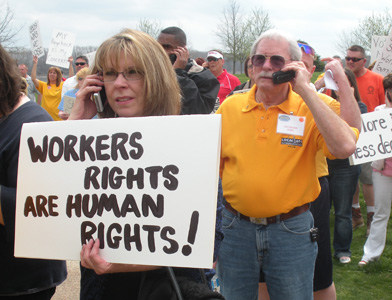 Jobs and the economy was a central theme of the rally, as it is widely understood by most economists that the fragile economic recovery hinges on increased consumer spending. Lowering wages by breaking unions will not help fix our economy, they argue.