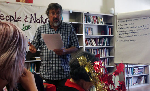 Responses in the discussion that followed showed a robust interest in meeting these challenges. Some speakers raised the notion that the present crisis of climate change could only be permanently turned back by a revolution in production, because of the damage that corporations have wreaked on a global scale in the pursuit of profit.