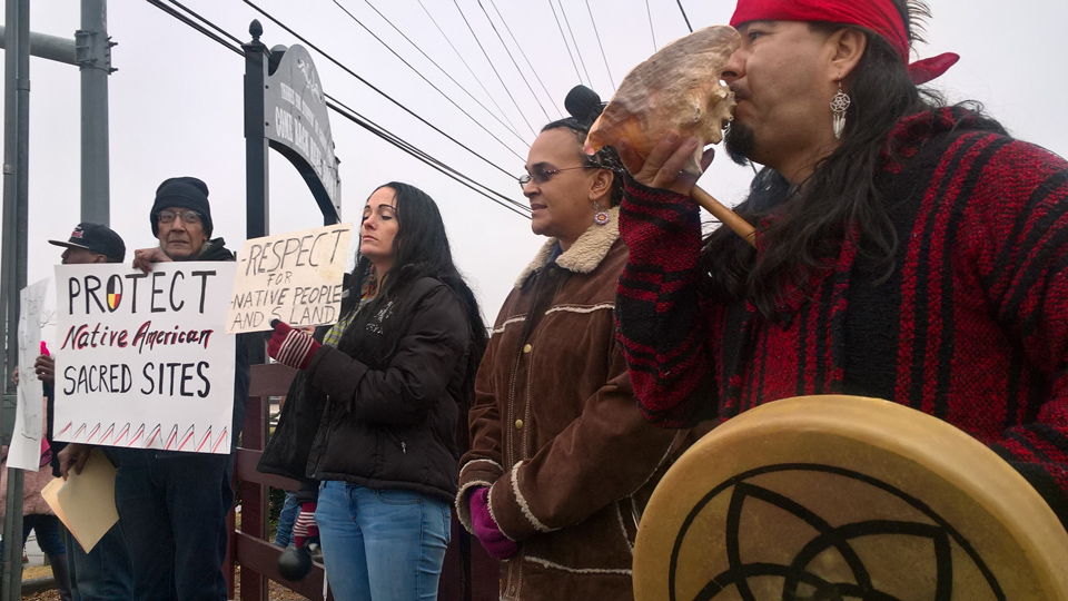 The demonstration was directed against Trump’s anti-Indian policies and expressions, including his adulation of the “Indian Killer” Andrew Jackson, whose portrait hangs in the Oval Office; his proposed budget cuts to the already severely underfunded Indian Health Service; his recent near destruction of national monuments sacred to Indigenous people; his complete disregard and further violation of Native American-U.S. treaties; and his ramming through of the Dakota Access Pipeline (DAPL) across treaty land of the Standing Rock Sioux Nation. These were just a few of the outrages committed by this so-called president that prompted the angry response of the Nashville’s Indigenous people. The anger was accompanied by drumming and the sound of conch shells.