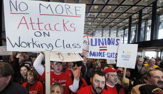 Photo: Supporters of Wisconsin workers demonstrate in opposition to Gov. Scott Walker. Gene J. Puskar/AP
