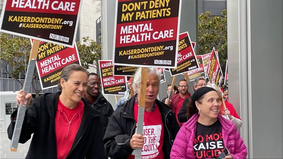 The National Union of Healthcare Workers represents all Kaiser mental health professionals in California, but contracts are separate between South and North because Kaiser facilities are managed by separate corporations within the Kaiser framework. The NUHW members see struggles for the two contracts having reciprocal effects.