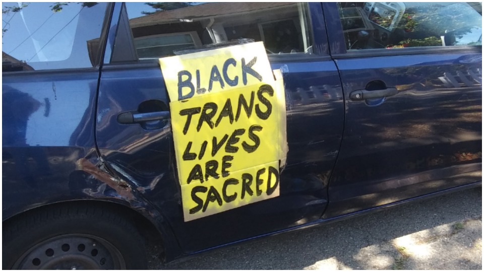 The car caravan got started while the rally of several hundred continued. Altogether, more than 450 people participated in the caravan, with horns blaring while chanting at the top of their lungs, “Black Trans Lives Matter!”