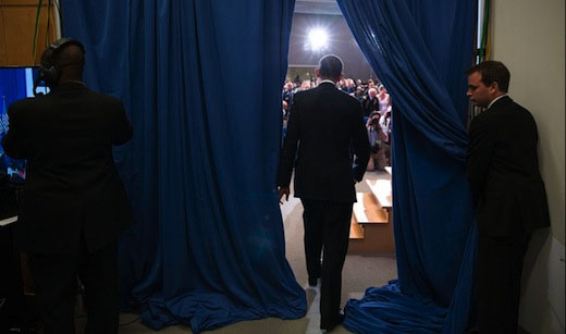 Photo: President Barack Obama prepares to take the stage as he is introduced at the National Defense University at Fort McNair in Washington, D.C., May 23, 2013. (White House/Pete Souza)