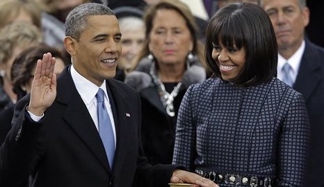 Photo: President Barack Obama receives the oath of office from Chief Justice John Roberts as first lady Michelle Obamas and their daughters Malia and Sasha look on at the ceremonial swearing-in at the U.S. Capitol during the 57th Presidential Inauguration in Washington, Jan. 21, 2013. Carolyn Kaster/AP