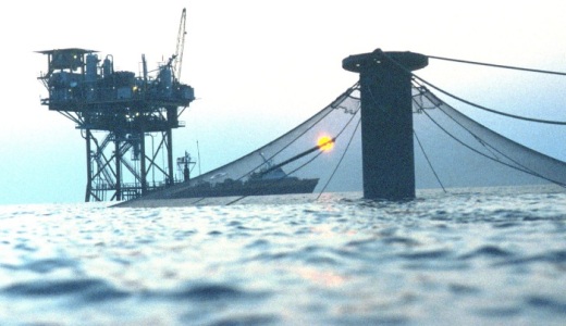 Photo: An offshore fisherie cage in the Gulf of Mexico stands near an oil rig off the coast of Mississippi. Tim Reid/ National Oceanic and Atmospheric Administration/Department of Commerce