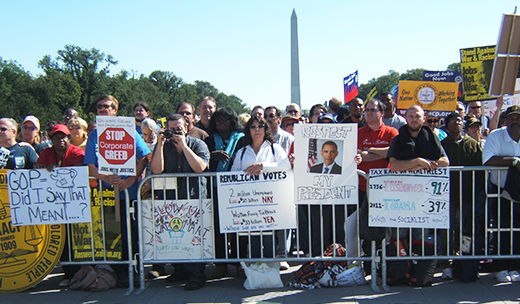 WASHINGTON–An estimated 170,000 protesters rallied at the Lincoln Memorial Oct. 2 to cheer calls for jobs, union rights and a massive vote against corporate greed and hate in the Nov. 2 midterm elections.