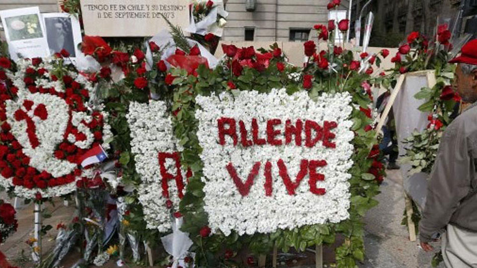 Para ello depositaron ofrendas florales al pie del monumento y en la entrada al palacio de La Moneda por la calle Morandé, utilizada tradicionalmente por Allende durante los mil días de su gobierno, para acceder a sus oficinas en la casa de gobierno.