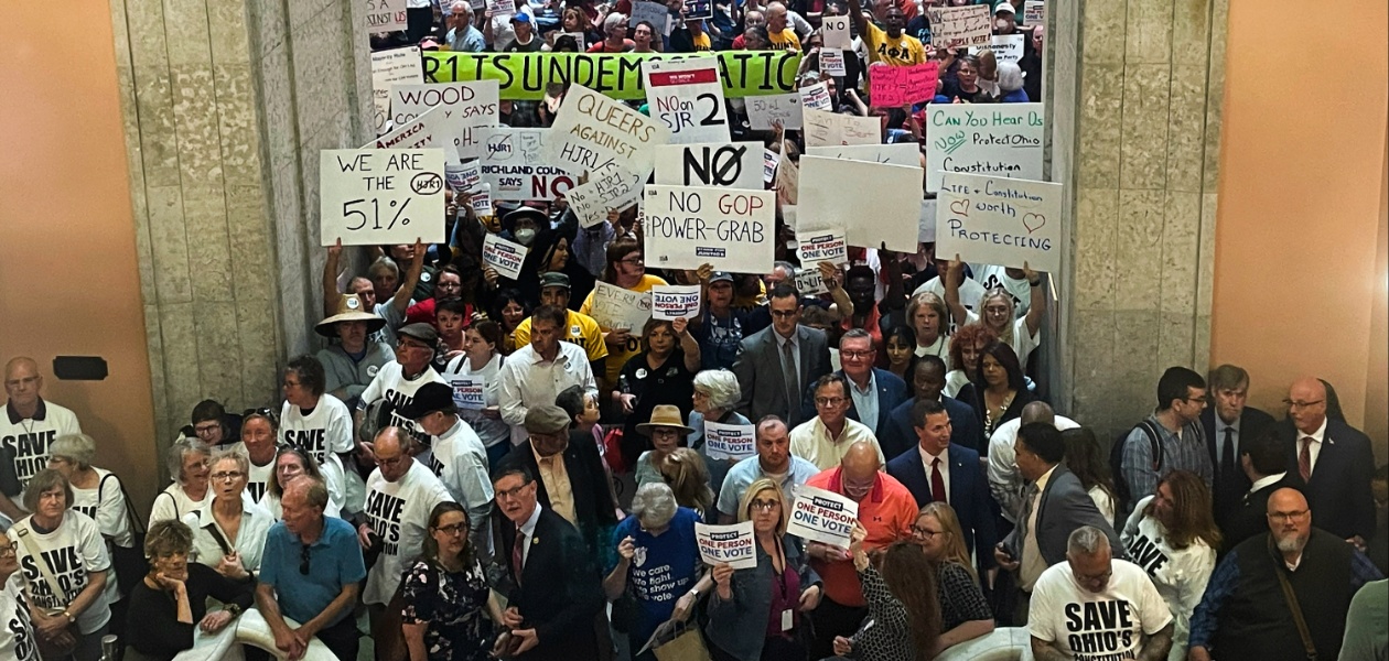 “What’s amazing is that this original crowd (that protested at the Capitol) has now grown into a far bigger pro-democracy army, doing all it can to make sure Ohio votes ‘No’ on Issue 1 between now and Aug. 8,” said Pepper.