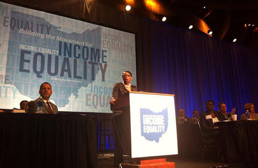 Photo: “Support those who support us”- Nina Turner rocking the convention! Ohio AFL-CIO, Facebook.