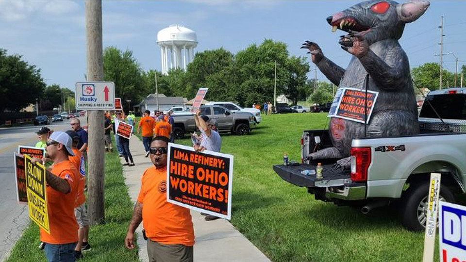 LIMA, Ohio—Last week, workers gathered in the summer heat to protest the decision of Cenovus, owner of a large oil refinery here, to bring in around 3,000 workers from outside Ohio to work on the facility during its scheduled maintenance shutdown.