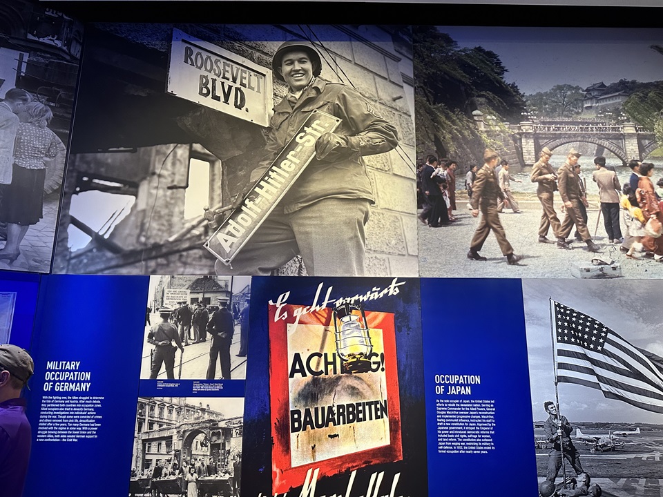 With its seven battleship-gray buildings, the latest its Liberation Pavilion, the museum’s jam-packed 200,000 square-foot space, including its many open atria, is truly impossible to fully explore even in a whole day’s visit. Every aspect of America’s involvement in the war is deeply probed, with its artifacts of daily and military life, film footage, newsreels, immersive displays and exhibits, installations, panels, photographs, maps, medals, newspapers, Jeeps, planes, tanks, and interactive gimmickry, not to mention its library of books, personal papers and oral histories of interest primarily to scholars.