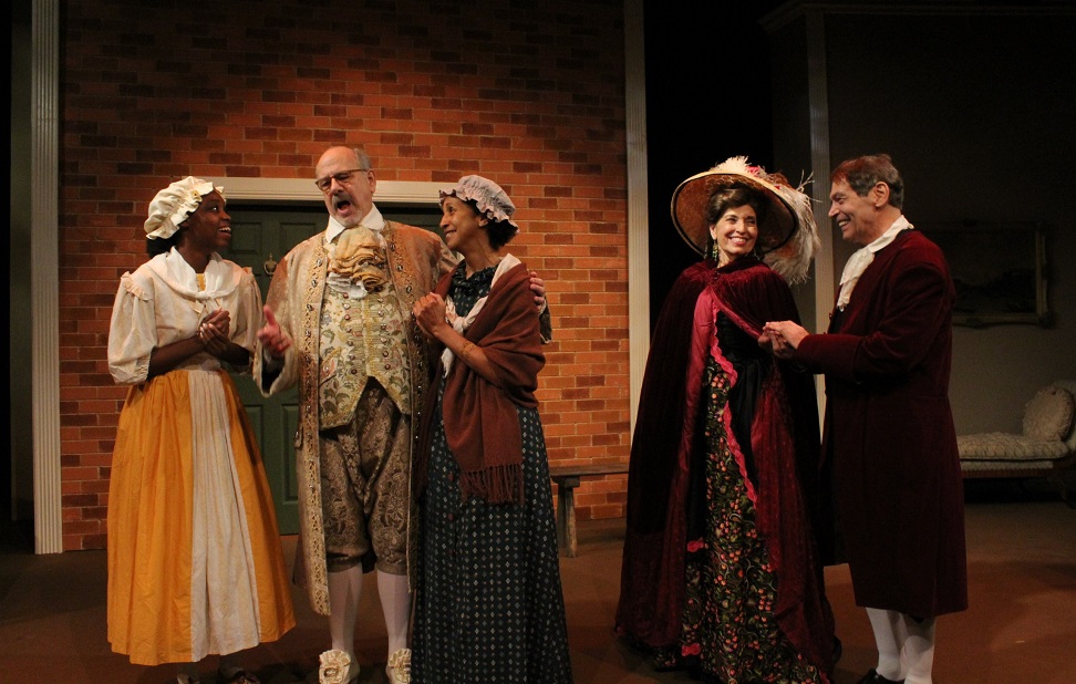 The playwright unfolds the play as something like a docudrama featuring Bet herself (Catherine Bruhier), daughter Lizzie (Kristal Dickerson), Col. Ashley (John Combs on opening night, July 27, filling in on-script for the originally scheduled Daniel Leslie called away on a sudden emergency), Alison Ashley (Katyana Rocker-Cook), Theodore and Pamela Sedgwick (Michael Robb and Diane Linder, alternating with Mandy Fason), Tapping Reeve (Joe Clabby), defense attorney David Noble (Jeffrey Winner), and incidental roles performed by David Westbay and Michael Kerr.