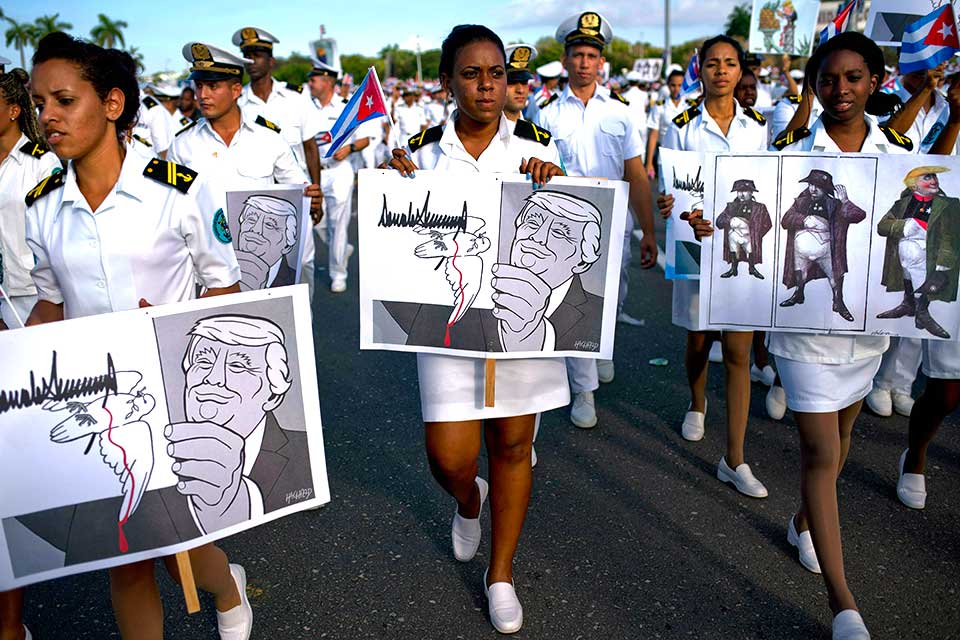 Trump revirtió el paso parcial de Obama, pero no obstante valioso y bien recibido por los cubanos, hacia la normalización. En concierto con los fanáticos anticubanos de derecha en Miami y otros lugares, Trump restableció a Cuba en la lista SSOT una vez que asumió el cargo. Esa multitud ayudó difundiendo una versión pervertida de la realidad de la gran contribución de Cuba a la negociación de un acuerdo de paz en Colombia.
