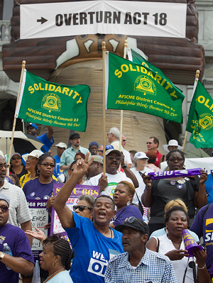 Photo: At the rally in front of the Pennsylvania State Capitol, July 24, in Harrisburg. Demonstrators protested the new voter ID law and set the stage for a state court hearing on a lawsuit seeking to prevent the law from taking effect this year. John C. Whitehead/The Patriot-News/AP