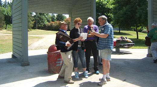 Both Parry and Marc Brodine, chair of the Communist Party of Washington State, picked up their guitars and led the crowd in a hootenanny, “Joe Hill,” “Rock Island Line,” “Deportee,” “City of New Orleans,” “De Colores” and many other favorites.